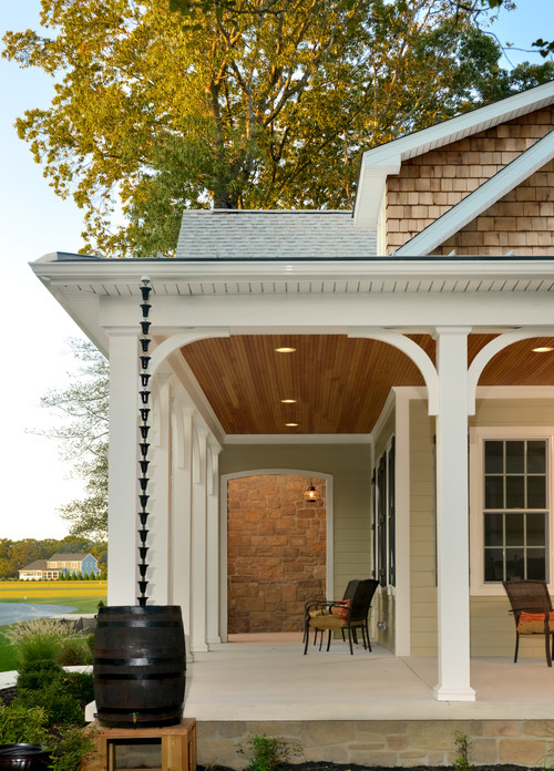 1. Storage is easy. With the help of gravity, a well-placed rain barrel collects roof runoff without any bells or whistles. Purchase a premade barrel with all the components included, or create one yourself. Connect a downspout to the container, or use a rain chain to move water from the roof gutter to your barrel.