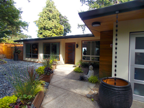 1. Storage is easy. With the help of gravity, a well-placed rain barrel collects roof runoff without any bells or whistles. Purchase a premade barrel with all the components included, or create one yourself. Connect a downspout to the container, or use a rain chain to move water from the roof gutter to your barrel.